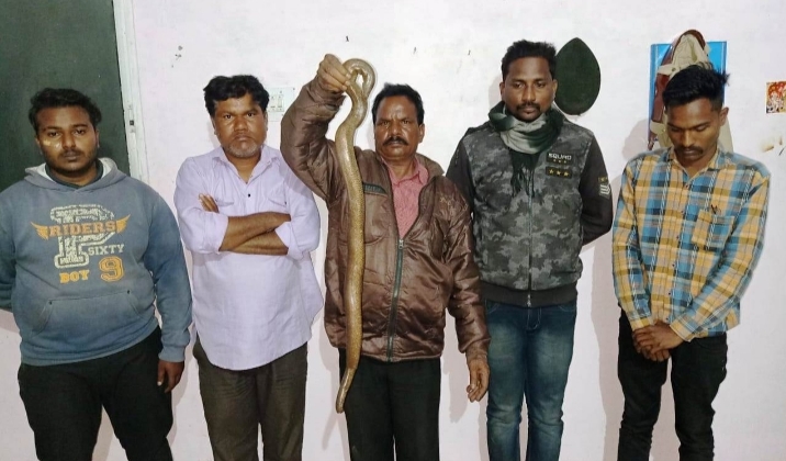 राजनांदगांव 24 दिसम्बर 2021। वनमंडलाधिकारी राजनांदगांव श्री एन गुरूनाथन नेे कुछ व्यक्तियों द्वारा सांप की विलुप्त प्रजाति को राजनांदगांव में बेचने की गोपनीय सूचना मिलने पर वन विभाग के अमले को संबंधितों के विरूद्ध कार्रवाई करने के निर्देश दिए। वन विभाग द्वारा राजनांदगांव विकासखंड के सिंघोला-बंगालीभोथीपार मार्ग में 5 व्यक्तियों को विलुप्त प्रजाति सांप सेण्ड बोवा को विक्रय करने ले जाते गिरफ्त में लिया गया। जिसमें ग्राम रेंगाडबरी बालोद निवासी दीपक सोनी, शांति नगर राजनांदगांव निवासी मो. हारून, बेलगांव राजनांदगांव निवासी दीपक, सेक्टर 6 भिलाई निवासी मनोज निर्मलकर एवं मोतीपुर राजनांदगांव निवासी सोमेश कुमार साहू पर कार्रवाई की गई। कार्रवाई में परिक्षेत्र अधिकारी राजनांदगांव श्री टीडी धृतलहरे, सहायक परिक्षेत्र अधिकारी, राजनांदगांव (शहर) श्री केके वर्मा एवं वन रक्षक श्री रामसिंह साहू, श्री सुभाष साहू, श्री भावदास साहू, श्री हेमंत साहू, श्री झलेन्द्र दैवेभो शामिल थे।