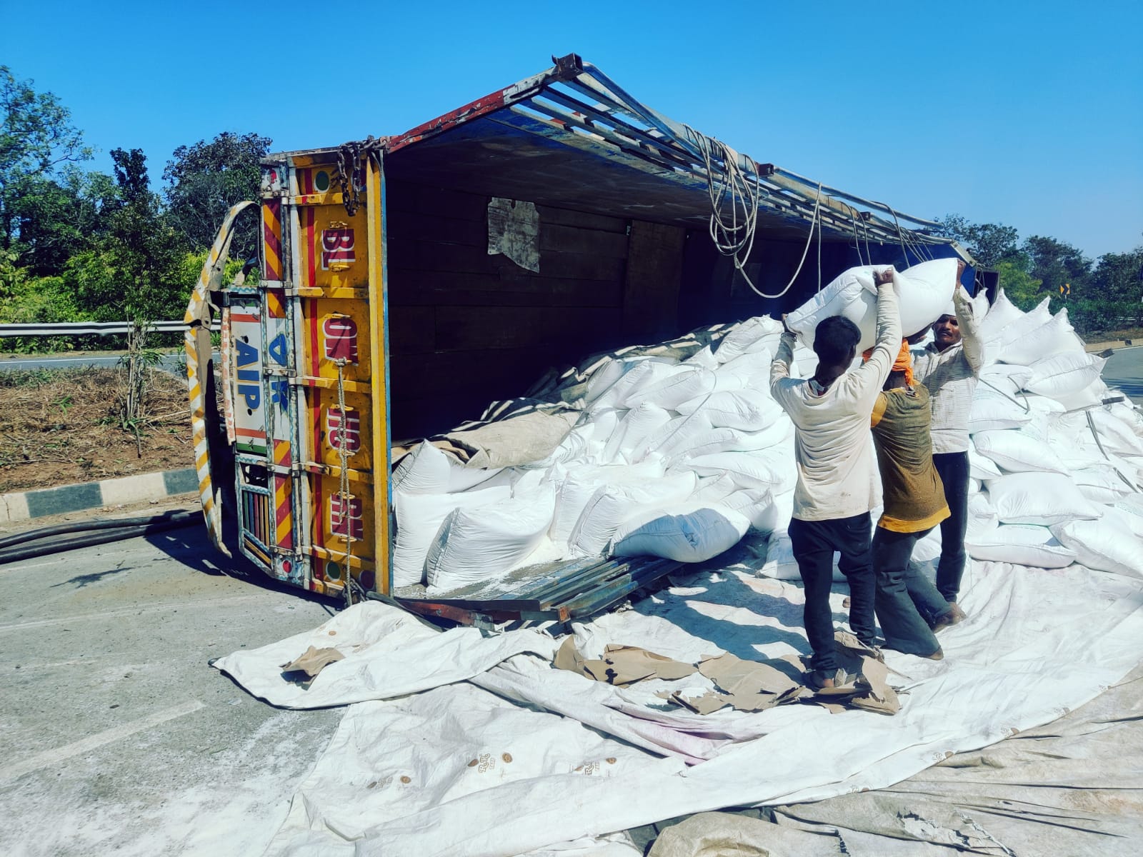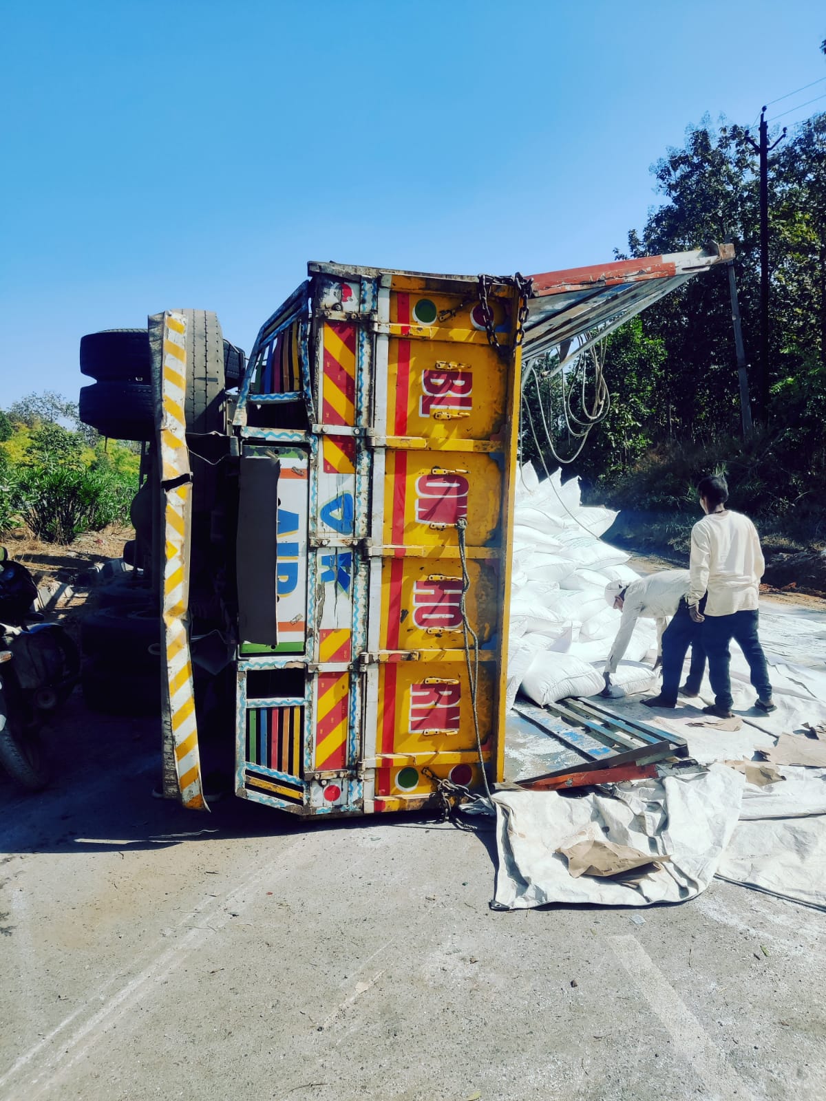 ट्रक में भरे प्लास्टिक दाना की बोरी सड़क पर बिखर गई। जिससे हाइवे को वन-वे किया गया था। मौके पर डायल 112 और बागनदी पुलिस पहुंची और हाइड्रा मंगाकर बोरी व ट्रक को किनारे कर सड़क को सुचारू किया गया। वहीं ट्रक चालक शिवजी राजवाड़ पिता बालकराम राजवाड़ निवासी बलिया उत्तरप्रदेश के पैर में गंभीर चोट लगी थी। जिसे डायल 112 की मदद से उपचार के लिए छुरिया सामुदायिक स्वास्थ्य केंद्र में भर्ती कराया गया है।