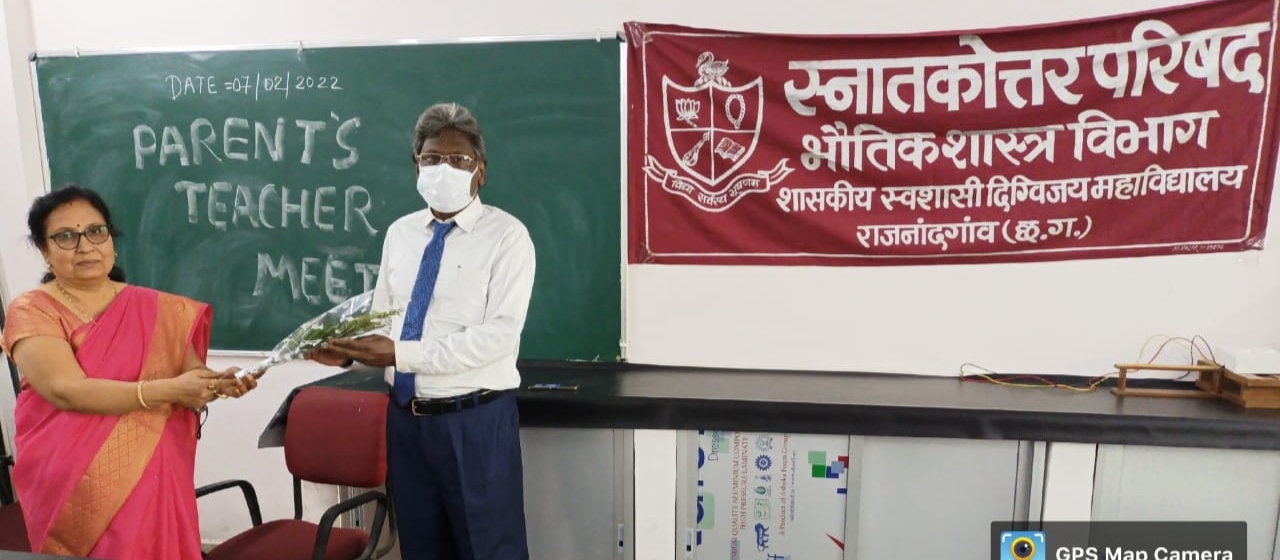 राजनांदगांव। शासकीय दिग्विजय महाविद्यालय के प्राचार्य डॉ. के. एल. टांडेकर के निर्देशन में भौतिक शास्त्र विभागाध्यक्ष डॉ. प्रीति बाला टांक के मार्गदर्शन में शिक्षक अभिभावक बैठक आयोजित की गई। कार्यक्रम की अध्यक्षता महाविद्यालय के प्राचार्य डॉ. टांडेकर ने किया।