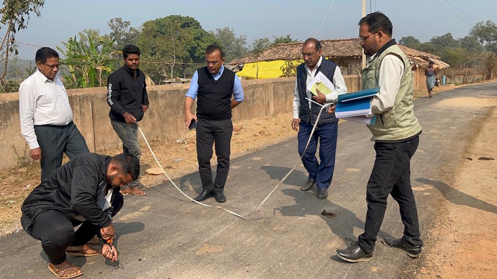 कलेक्टर ने पीएम ग्राम सड़क योजना की गुणवत्ता की जांच करने स्वयं पहुंचे, गुणवत्ता क्रास चेक के लिए पीडब्लूडी के अधिकारी से कराई जांच