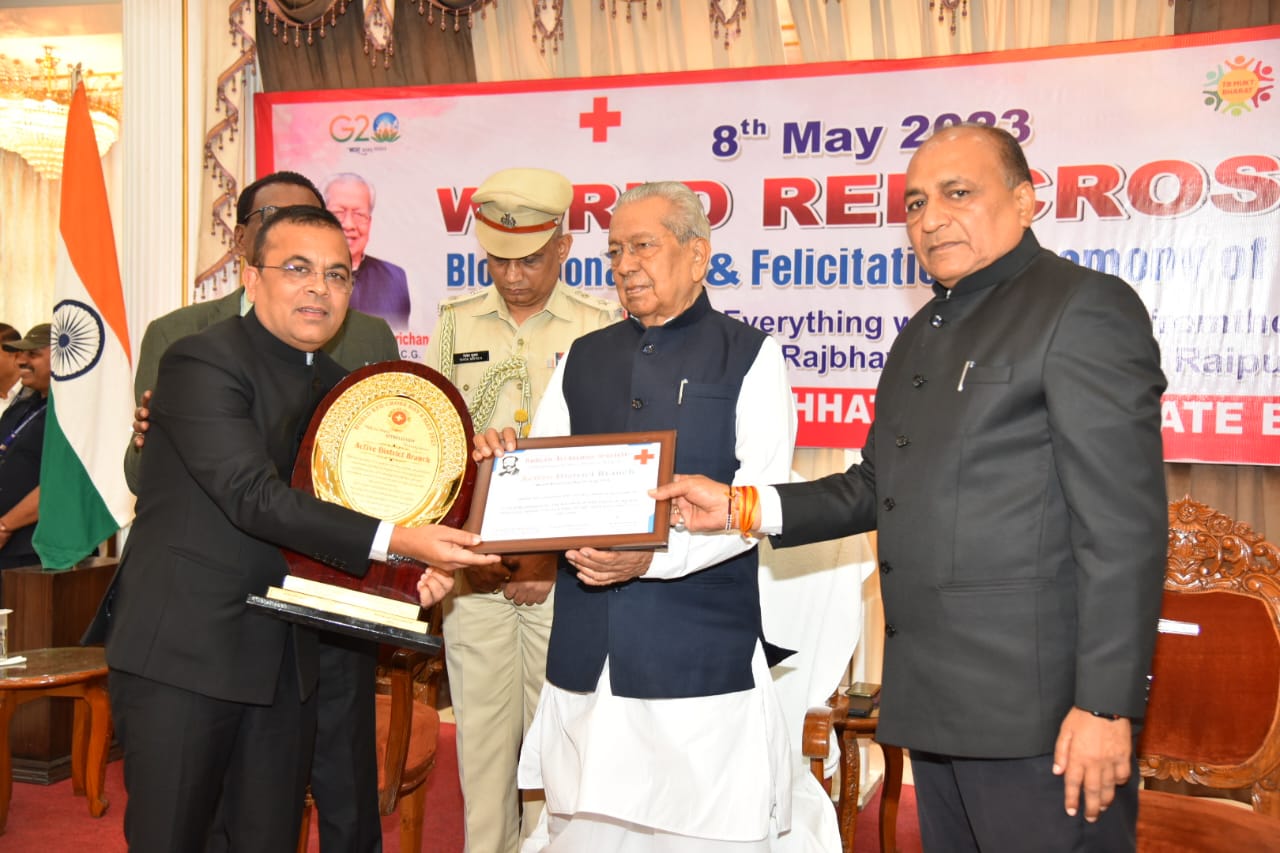 कबीरधाम ’रेडक्रास को मिला सक्रीय जिला का गौरव सम्मान