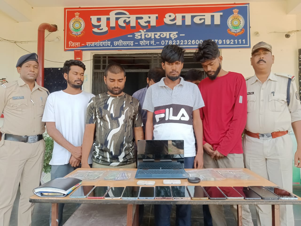 10/05/2023 को प्रज्ञागिरी के पास मुर्गी फार्म में ऑन लाईन आईपीएल किकेट सट्टा बाहर से आये लोगो के द्वारा खिलाये जाने की सूचना मिलने पर, थाना प्रभारी निरीक्षक एमन साहू के नेतृत्व में टीम तैयार किया गया था, मुखबीर सूचना के आधार पर मुर्गी फार्म में रेड कार्यवाही की गई, जिसमें 06 आरोपियो को चेन्नई सुपर किंग्स एंव दिल्ली कैपिटल के मैच में हार जीत का दाव लगा कर ऑन लाईन सट्टा खिलाते हुये पकडा गया। जिनके कब्जे से नगदी रकम 50,500/रू,एवं 13 नग मोबाईल फोन विभिन्न कम्पनी का व 01 नग लेपटॉप, 03 हॉट स्पार्ट वाई-फाई व 01 नग डाट पेन को गवाहो समक्ष घटना स्थल प्रज्ञागिरी के पास मुर्गी फार्म से जप्त किया गया। आरोपियो के विरूध्द थाना डोंगरगढ़ में अपराध क्रमांक 261/2023 धारा 04 क जुआ एक्ट एवं छत्तीसगढ़ जुआ प्रतिषेध अधिनियम 2022 की धारा 06 एवं 07 के तहत अपराध पंजीबध्द कर सभी आरोपियो को विधिवत गिरफ्तार किया गया। जिन्हे माननीय न्यायालय डोगरगढ़ के समक्ष ज्यूडिसियल रिमांड पर न्यायालय पेश किया गया। मुख्य आरोपीगण मुलतः भिलाई सेक्टर 05 व कैम्प 02 छावनी के है निवासी। आरोपियो के अपराधिक रिकार्ड की जानकारी संबंधित थानो से ली जा रही है।