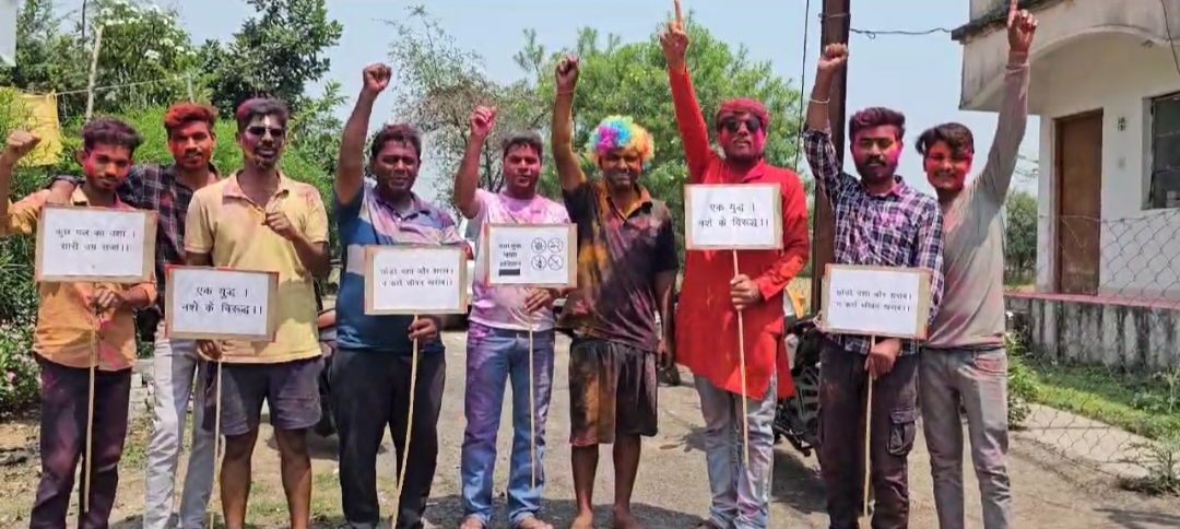 होली त्यौहार में जिले के युवा ने संदेश दिया नशा छोड़ो, साय साय, का स्लोगन नारा देकर होली की बधाई दी