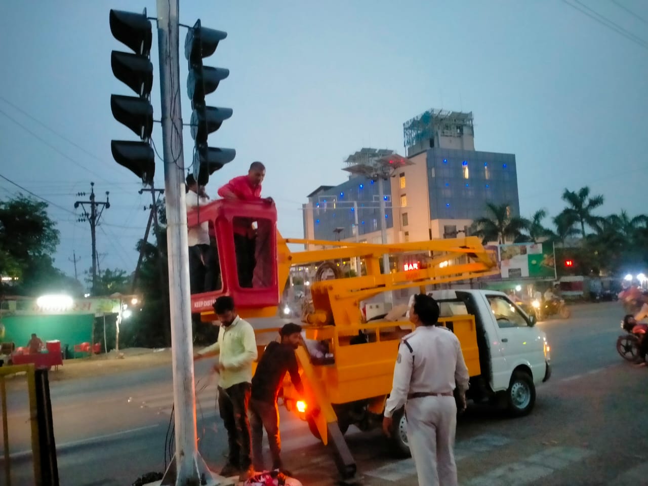 राजनांदगांव। आज दिनांक 16.05.2024 को पुलिस अधीक्षक श्री मोहित गर्ग के निर्देशन एवं अति0 पुलिस अधीक्षक श्री राहुल देव शर्मा के मार्गदर्शन में यातायात प्रभारी रक्षित निरीक्षक श्री लोकेश कुमार कसेर एवं यातायात टीम निरीक्षक श्री अजय खेस, श्री नवरतन कश्यप एवं राघव एडवोटाईजमेंट रायपुर के सहयोग से शहर के आर. के. नगर तिराहा में सुगम यातायात संचालन एवं सड़क हादसे रोकने के प्रयास में ट्रैफिक सिग्नल लगाया गया है।