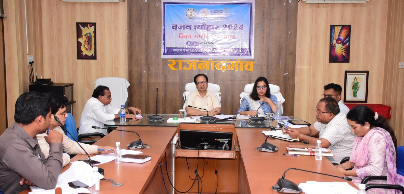 राजनांदगांव 06 सितम्बर 2024। कलेक्टर श्री संजय अग्रवाल की उपस्थिति में कलेक्टोरेट सभाकक्ष में वजन त्यौहार 2024 के संबंध में जिला स्तरीय कार्यशाला का आयोजन किया गया। कलेक्टर श्री अग्रवाल ने बताया कि जिले में बच्चों के पोषण स्तर के आंकलन के लिए 12 सितम्बर से 23 सितम्बर 2024 तक वजन त्यौहार का आयोजन किया जाएगा। उन्होंने कहा कि बच्चों के सुपोषण के लिए उनके वजन की जानकारी होना जरूरी है। बच्चों को पौष्टिक आहार देते हुए उनके विकास की मॉनिटरिंग करना है। सामुदायिक सहभागिता से सुपोषण के प्रति जागरूकता लाने की आवश्यकता है। कलेक्टर ने रोस्टर बनाकर गांव-गांव में वजन त्यौहार का आयोजन करने के निर्देश दिए। इसके लिए सभी गांवों में मुनादी कराने कहा। उन्होंने आंगनबाड़ी केन्द्रों में वजन त्यौहार के आयोजन की पूरी तैयारी करने के निर्देश दिए। आंगनबाड़ी केन्द्रों में वजन मशीनों की उपलब्ध सुनिश्चित करने के लिए कहा। उन्होंने जिले में आयोजित वजन त्यौहार में सभी संबंधित विभागों को समन्वित तरीके से कार्य करने के निर्देश दिए।