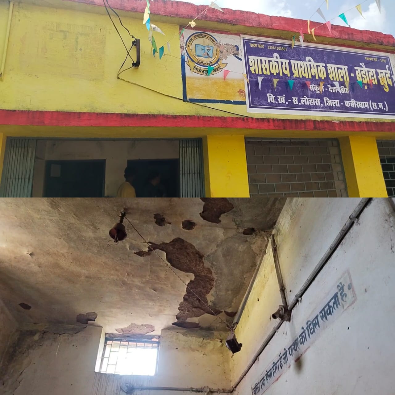 कवर्धा। जिले के सहसपुर लोहारा विकासखंड के अंतर्गत शासकीय प्राथमिक शाला बड़ौदा खुर्द के स्कूल का हाल बेहाल,स्कूल के छत का पलस्तर पूरी तरह भर भराकर गिर रहे,छोटे छोटे बच्चे जान जोखिम में डालकर पढ़ाई करने को मजबूर, प्रशासन को अवगत तक नहीं की स्कूल का हाल हैं बेहाल,एक और जिला कलेक्टर के द्वारा स्कूल लगने से पहले जारी आदेश में बताया गया तह की स्कूल प्रवेश उत्साह से पहले सभी स्कूलों का मरम्मत कार्य पूरी तरह की जाय किंतु शायद इस स्कूल भवन के लिए बजट नहीं,एक ओर राज्य सरकार ने शिक्षा नीति के तहत करोड़ों रुपए का बजट पेश करती है किंतु इस स्कूल भवन के लिए वह बजट एक कागज में लिखी की लिखी रह गई है,,स्कूल के शिक्षक का कहना है कि कई बार इस बात की सूचना दिया जा चुका है किंतु अभी तक कोई कार्यवाही हुई ही नहीं।