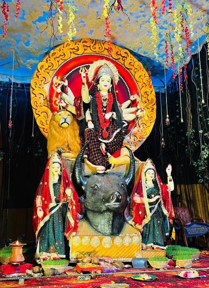 पंडाल में स्थापित 14 फीट ऊंची मां दुर्गा की विशाल प्रतिमा श्रद्धालुओं को आस्था और भव्यता का अनुपम अनुभव करा रही है। गुफा के भीतर देवी–देवताओं की सुंदर मूर्तियां और आकर्षक प्रकाश व्यवस्था श्रद्धालुओं को ऐसा प्रतीत कराती है मानो वे किसी अद्भुत देवी धाम में पहुंच गए हों।