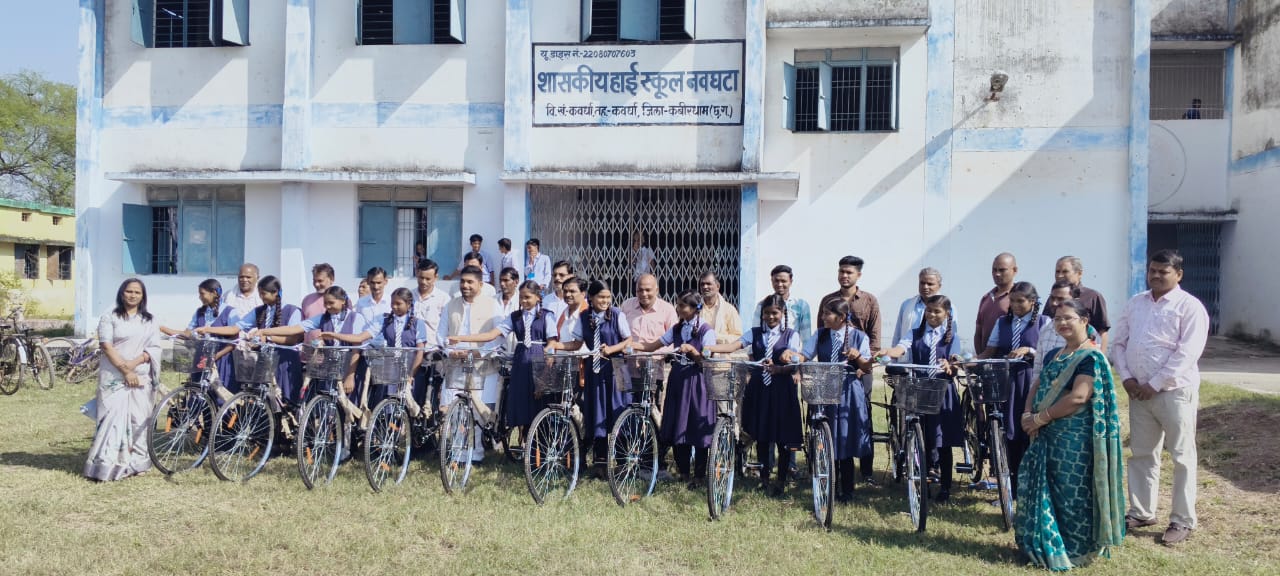 कवर्धा। दिनांक 11/11/2025 को शा.हाई स्कूल नवघटा विकास खंड कवर्धा में कक्षा नवमीं की छात्राओं को निः शुल्क सरस्वती सायकल का वितरण जिला पंचायत सदस्य वीरेंद्र साहू के द्वारा किया गया ।