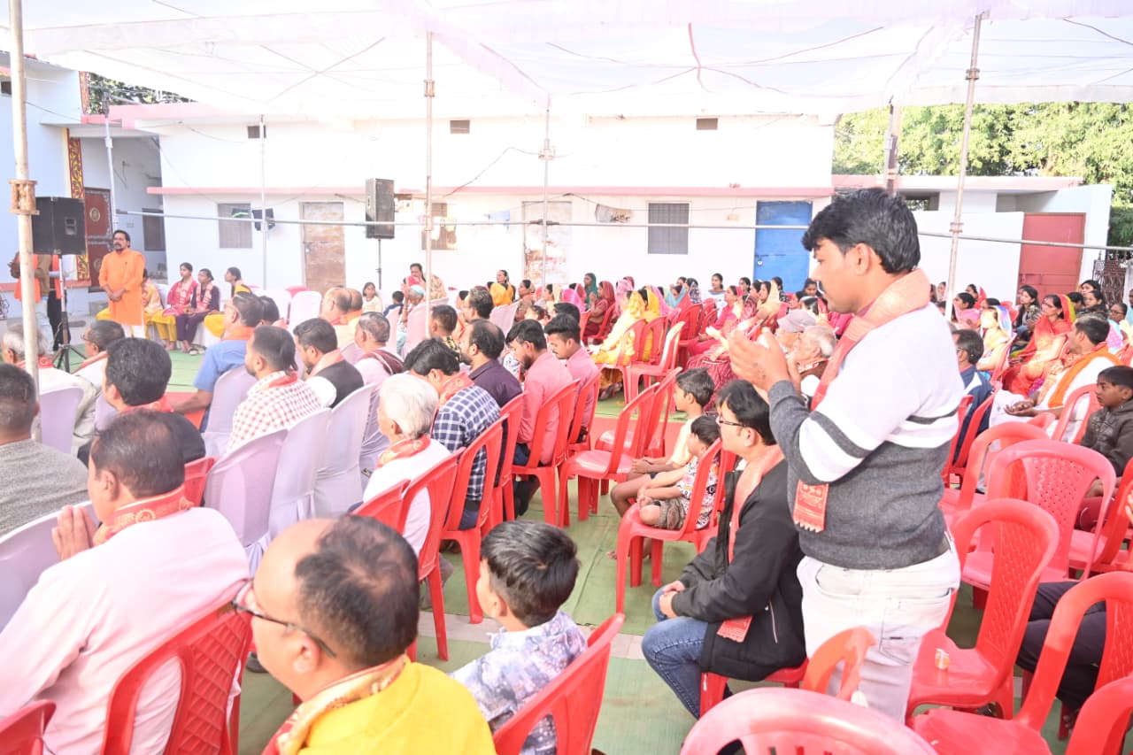 सावरकर बस्ती मे निवासरत वीर कारसेवक सुशील तिवारी, अश्वनी सिंह ठाकुर, कमलेश मिश्रा का तिलक लगाकर तलवार व श्रीफल एवं भगवा वस्त्र भेंट कर सम्मान किया गया।