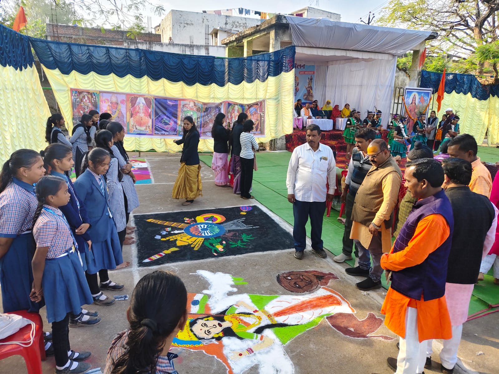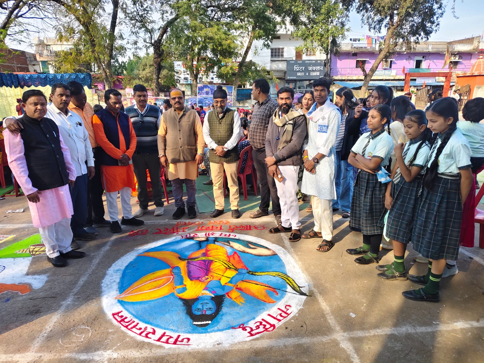 रंगोली प्रतियोगिता में अनेक प्रतिभागियों ने भाग लिया, जिसमें—