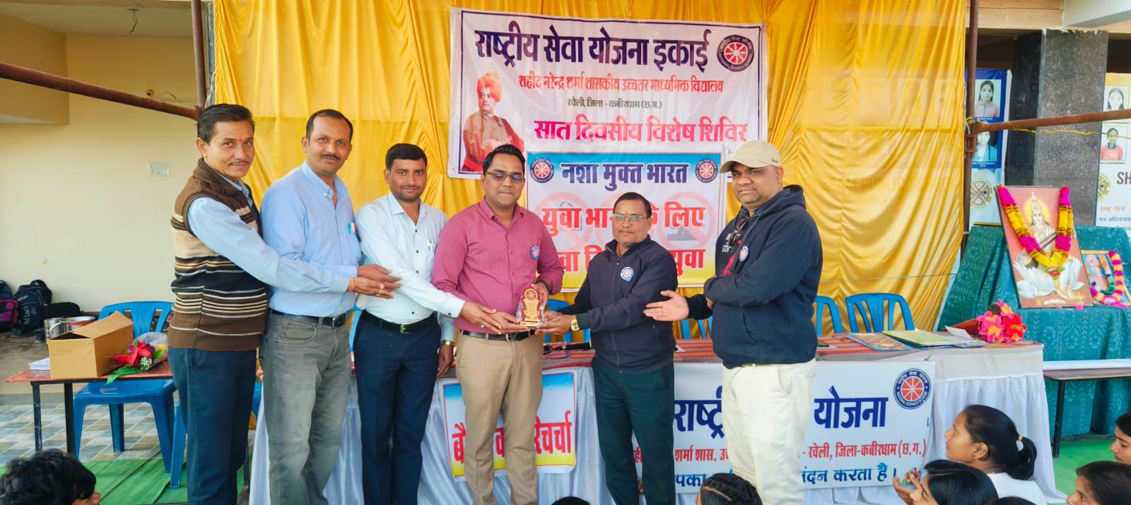 कवर्धा। शहीद नरेन्द्र शर्मा शासकीय उच्चतर माध्यमिक विद्यालय रवेली के राष्ट्रीय सेवा योजना के 50 स्वयंसेवक 02 जनवरी से 08 जनवरी तक ग्राम दुल्लापुर में चलने वाले शिविर का मार्गदर्शक कार्यक्रम समन्वयक डॉ जैनेंद्र दिवान हेमचंद विश्वविद्यालय दुर्ग, डॉ कामती सिंह परिहार जिला संगठक कबीरधाम के कुशल मार्गदर्शन में कार्यक्रम अधिकारी जितेन्द्र कुमार राजपूत व्याख्याता, सुश्री राधिका मंडावी व्याख्याता के द्वारा शिविर का आयोजन किया जा रहा है जिसके बौद्धिक परिचर्चा सत्र में डॉ. गेमेस चौधरी प्राथमिक स्वास्थ्य केंद्र रवेली द्वारा सफलता कैसे प्राप्त करे, ध्यान एकाग्र कैसे करे , जीवन निर्वहन के लिए हुनर का होना अति आवश्यक है और अपने सेहत का ध्यान रखने ,नशा मुक्त समाज के निर्माण में अपनी उत्तरदायित्व का निर्वहन करने,समाज में व्याप्त बुराइयों के पर जोर देते हुए बताया कि हमें अपने परिवार का माहौल अच्छा बनाने के लिए अपने माता पिता का सेवा करना, इज्जत करना आवश्यक हैं जिन्होंने हमारी खुशी के लिए अपनी खुशियों का सर्वस्व न्योछावर किया है l उनके पास थोड़ा समय निकाल कर जरूर बैठे उनकी कार्यों में सहयोग करे l माता पिता को आपके परीक्षा में अच्छे नंबर प्राप्त करने से कही ज्यादा अच्छे बेटा, बेटी होने के मापदंड के साथ नैतिक मूल्यों पर खरा उतरने पर ज्यादा खुशी महसूस करेंगे l उपस्थित स्वयं सेवक को कहानी के माध्यम से प्रेरित किया I