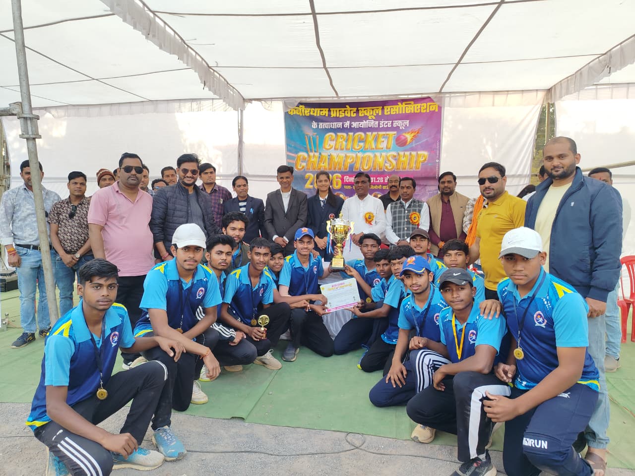 कवर्धा। नगर के छीरपानी कॉलोनी मैदान में कवर्धा प्राईवेट स्कूल संघ के तत्वाधान में इंटर स्कूल क्रिकेट टूर्नामेंट का आयोजन दिनांक 10 से 11 जनवरी तक किया गया था जिसमें नगर के श्रीरामकृष्ण पब्लिक स्कूल,गुरुकुल पब्लिक स्कूल, अभ्युदय स्कूल,अशोका पब्लिक स्कूल,दिल्ली पब्लिक स्कूल,संस्कार पब्लिक स्कूल,आदर्श विद्या मंदिर एवं रामकृष्ण पब्लिक स्कूल रवेली कुल आठ टीम सम्मिलित हुए थे जिसके समापन समारोह में मुख्यातिथि चंद्रप्रकाश चंद्रवंशी अध्यक्ष नगर पालिका,पवन जायसवाल उपाध्यक्ष नगर पालिका,रिया तिवारी अंतर्राष्ट्रीय बॉलबैडमिंटन स्वर्ण पदक विजेता खिलाड़ी,पार्षद दीपक सिन्हा,पार्षद बिहारी लाल धुर्वे,पार्षद योगेश चंद्रवंशी,पार्षद डोनेश ठाकुर, छत्तीसगढ़ प्रांत उपाध्यक्ष पवन देवांगन,