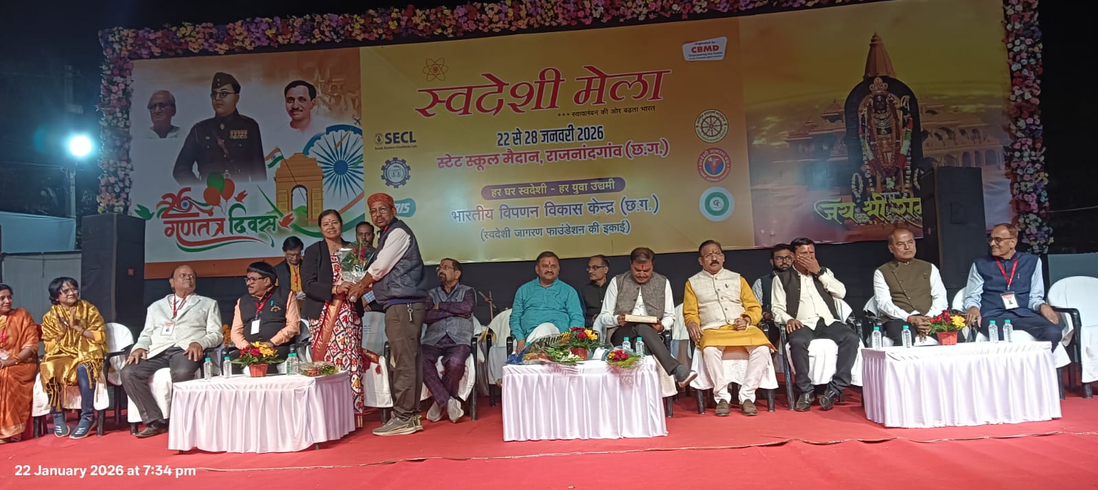 राजनांदगांव। “स्वालंबन की ओर बढ़ता भारत” के स्लोगन के साथ गुरुवार को स्टेट हाई स्कूल मैदान में सात दिवसीय स्वदेशी मेला की शुरुआत हो चुकी है। 22 जनवरी से 28 जनवरी 2026 तक चलने वाले स्वदेशी मेला का उद्घाटन समारोह गुरुवार शाम को रखा गया।