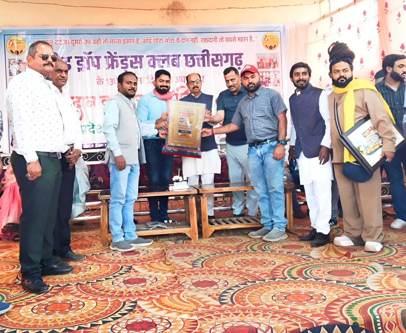 कवर्धा। रेड ड्राप फ्रेंड्स क्लब छतीसगढ़ संस्था के द्वारा 12 फ़रवरी को कर्मा भवन सुपेला भिलाई मे समाजसेवी संस्था को सम्मानित किया जिसमे कवर्धा जिले से जनसेवक नयी चमक रक्तदान एवं जनकल्याण समिति के संस्थापक एवं जिलाध्यक्ष हरीश साहू का नाम चयन करते हुवे सम्मान समारोह मे आमंत्रित किया गया था कवर्धा जिले मे जनसेवा के छेत्र मे अपनी अलग पहचान बनाने वाले हरीश साहू लगातार रक्तदान, गौसेवा एवं समाजसेवा मे अपनी महत्वपूर्ण सेवा प्रदान करते हुवे कुशल व्यक्तित्व और सरल सहज रूप से लोगो के सेवा कार्य मे अग्रणी कार्य से अंतराष्ट्रीय स्तर पर जगह बना लीं है। पिछले 4 माह पहले नई दिल्ली मे भी साहू को राष्ट्रीय स्तर पर सम्मानित किया गया था,साहू को राज्य से लेकर अंतराष्ट्रीय स्तर पर सम्मानित किया जा चूका है, इसी कड़ी मे पुनः 12 फरवरी को भिलाई मे रक्तदान, गौसेवा एवं समाज सेवा के छेत्र मे बेहतर कार्य करने के लिए कवर्धा जिले से हरीश साहू व उसकी संस्था के महासचिव कुंजबिहारी साहू को राजस्तरीय सम्मान से सम्मानित किया गया l