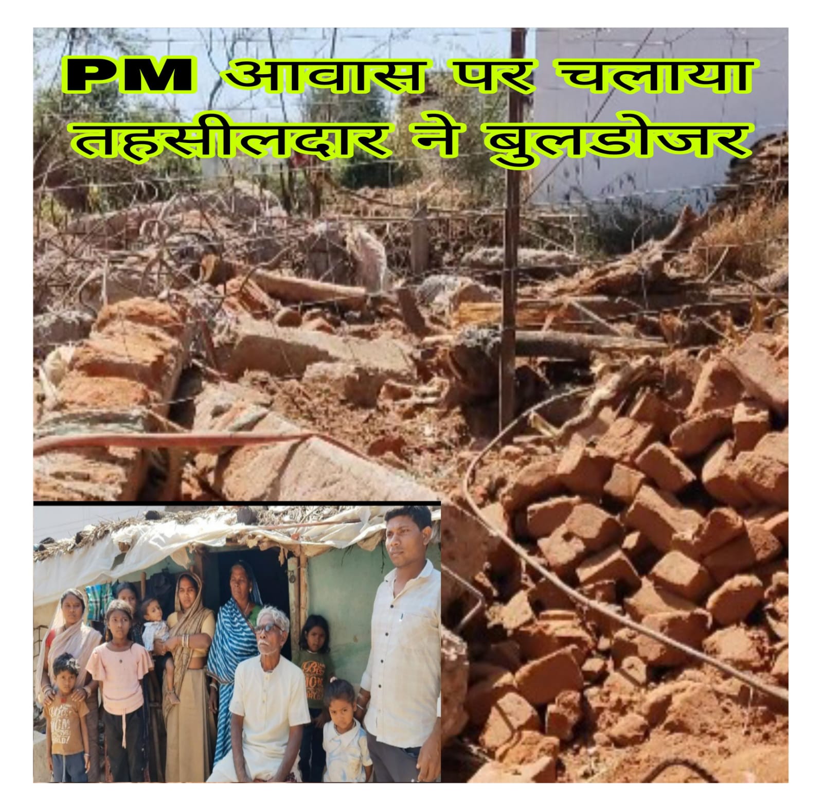 *निर्माणाधीन आवास पर तहसीलदार का बुलडोजर,परिवार आया सड़क पर*