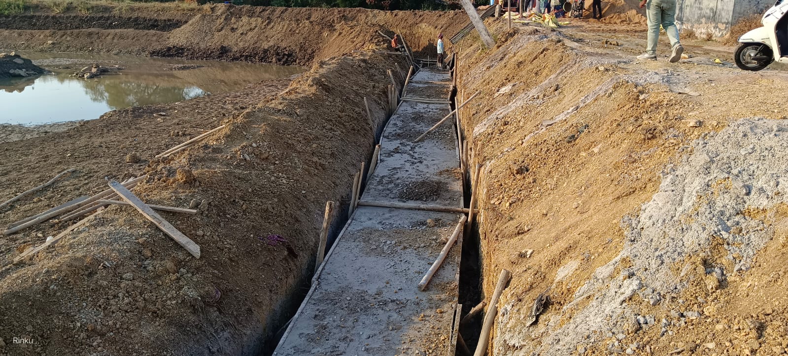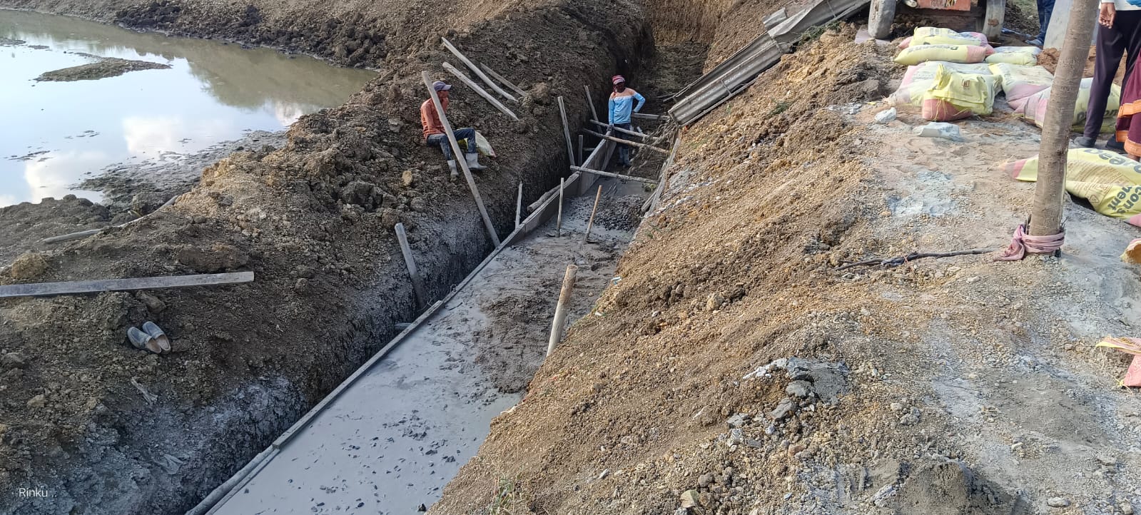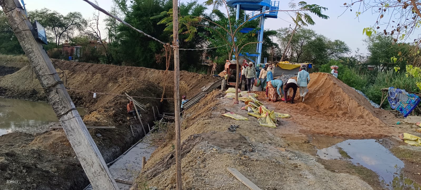 जेवडन खुर्द में रिटर्निग वाल निर्माण में भारी अनियमितता, सुचना बोर्ड नही बना, गुणवत्ता की कमी