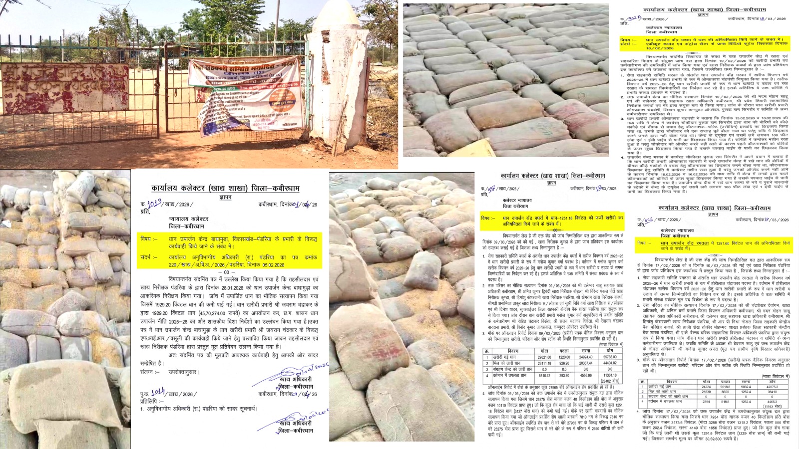 3 उपार्जन केंद्रों बघर्रा, बाघामुड़ा और रमतला से 4472 क्विंटल धान गायब ₹1.06 करोड़ का घोटाला उजागर