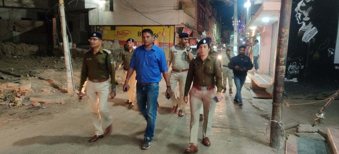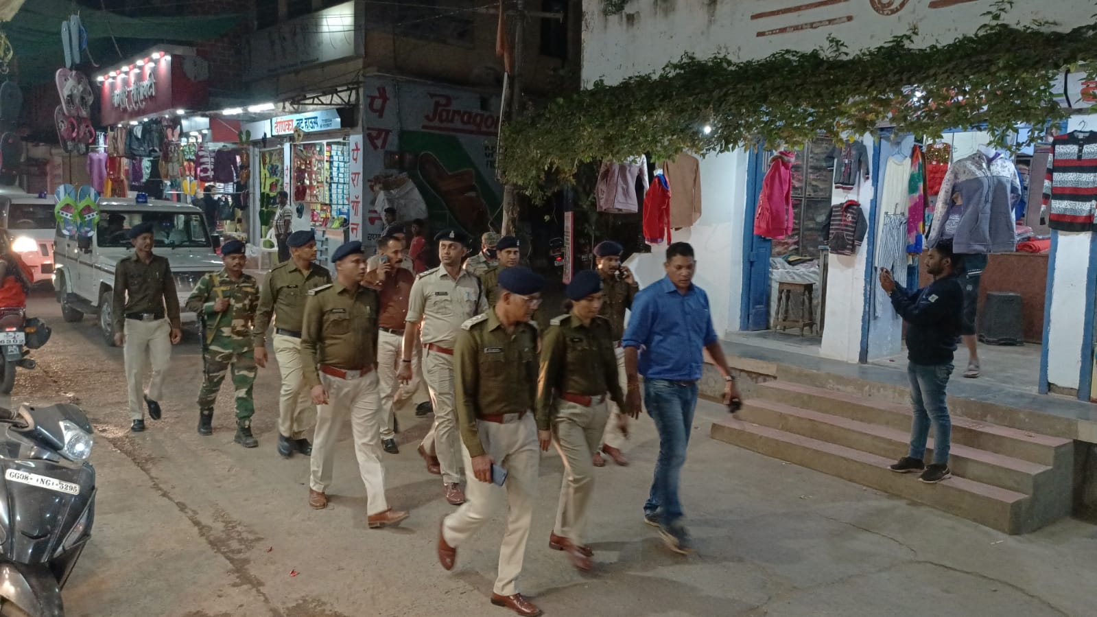 Rajnandgaon. दिनांक08-12-2021 को विजुअल पुलिसिंग के तहत् पुलिस अधीक्षक राजनांदगांव डी.श्रवण के निर्देशन में अतिरिक्त पुलिस अधीक्षक राजनांदगांव प्रज्ञा मेश्राम द्वारा खैरागढ़ जाकर पुलिस स्टाफ को फालीन कर ब्रीफ किया गया, उनके द्वारा अपराधों पर नियंत्रण हेतु शहर भ्रमण कर संदिग्धों से पूछताछ करना व प्रतिबंधात्मक कार्यवाही करने हेतु निर्देशित किया गया, गुंडा बदमाश निगरानी बदमाश व असामाजिक तत्वो पर सतत् निगाह रखने को कहा गया तत्पश्चात एस.डी.ओ.पी. खैरागढ़ श्री दिनेश सिन्हा डी.एस.पी. श्री प्रकाश नायक, थाना प्रभारी खैरागढ़, छुईखदान एवं उनके दल बल के साथ खैरागढ़ के जय स्तंभ चौक, बक्सी मार्ग, इतवारी बाजार मेन रोड आदि स्थानों पर पैदल पेट्रोलिंग की गई और चौक चौराहों पर पाईन्ट ड्यूटी लगवाई गई। इसी प्रकार माननीय मुख्यमंत्री महोदय के निर्देश के अनुरूप जिले के समस्त थाना चौकियों में विजुअल पुलिसिंग के तहत् जिले के समस्त थाना प्रभारियों द्वारा अपने-अपने थाना क्षेत्रों में उपरोक्तानुसार कार्यवाही की जा रही है।
